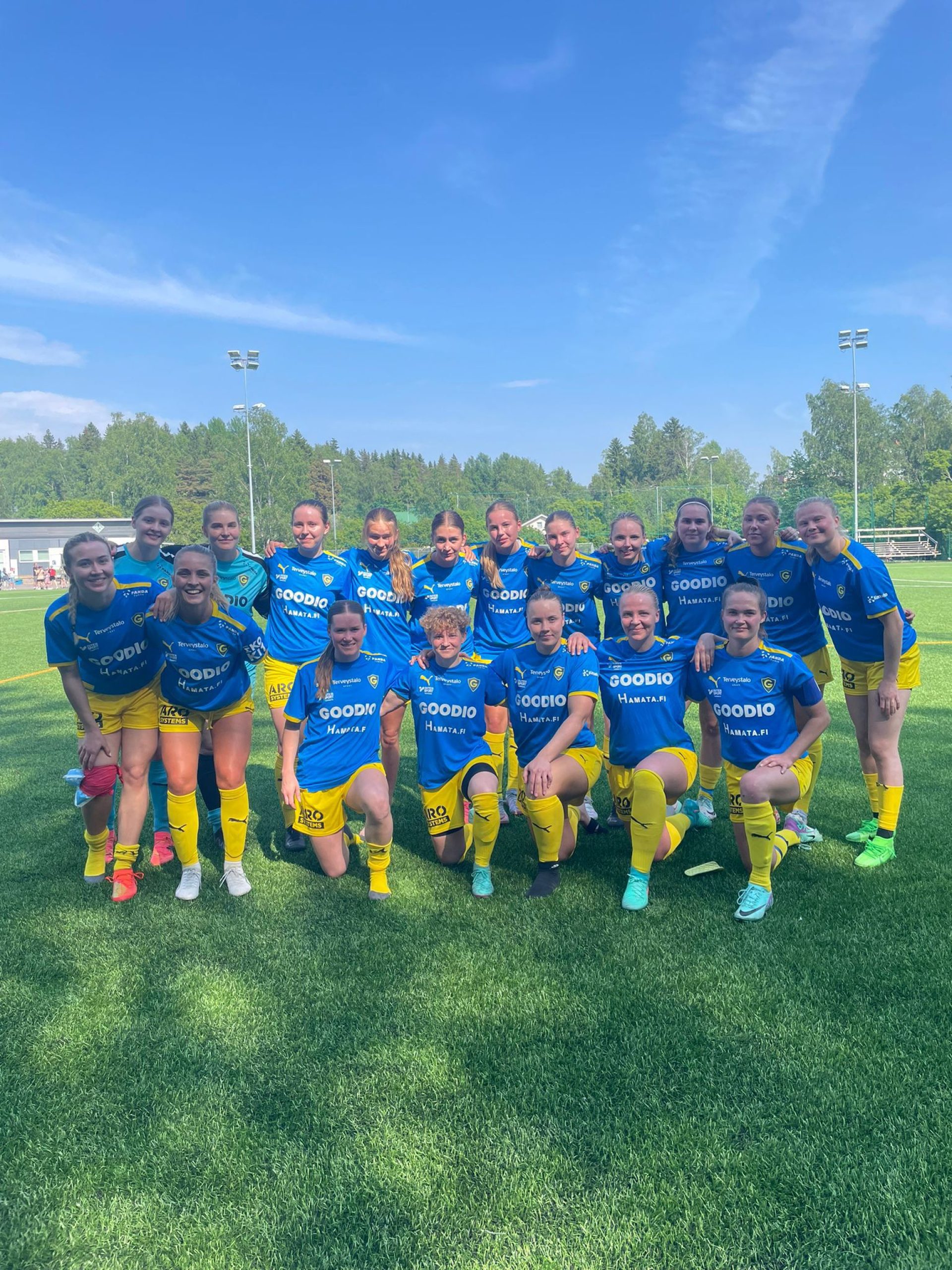 Lämpimänä sunnuntaipäivänä pelatussa ottelussa oli alkuun havaittavissa totuttelua kuumuuteen sekä nihkeään kenttään. Pallonhallinta oli kuitenkin pelin alusta asti selkeästi sinikeltasilla. Vahvan pallonhallinnan jälkeen avausosuma tuli vihdoin 15. minuutilla, kun Tiia Savolainen laukoi pallon komeasti maaliin Moona Talkan esityöstä.