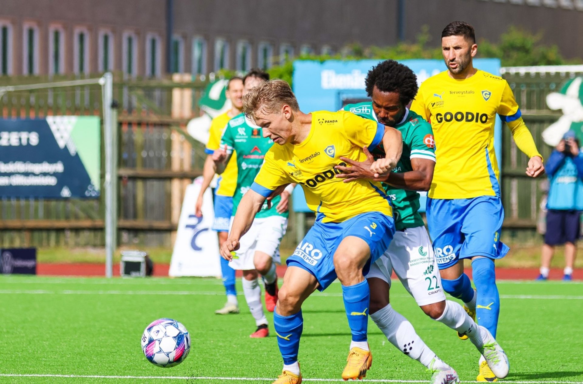 Kamppailun avausmaali nähtiin jo seitsemännellä minuutilla. Frank Owusu laukoi voimalla boksin ulkopuolelta ja laukaus otti Salomo Ojalaan osuman, josta pallo kimposi ohi voimattoman Gnistan-vahti AJ Marcuccin.